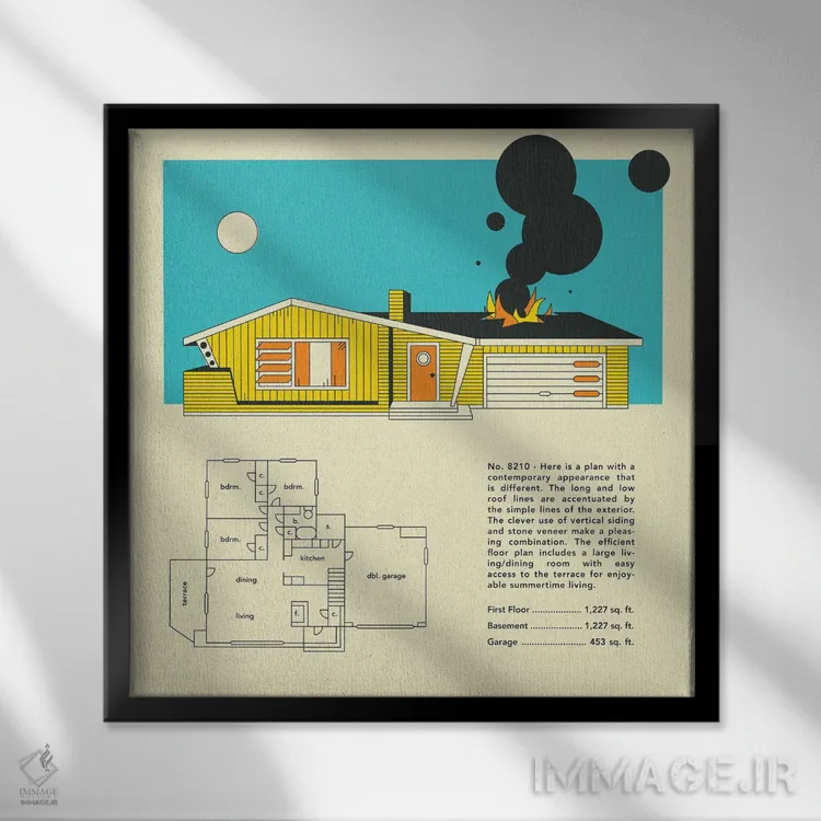 تابلو طراحی منزل میانقرنی اثر جازبری بلو (هنرمند مدرن/برند هنری)