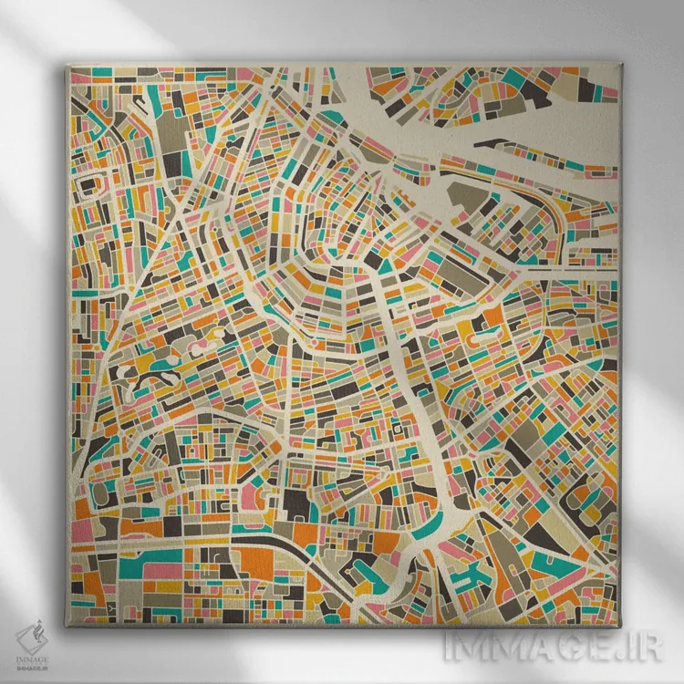 تابلو نقشه انتزاعی شهر آمستردام اثر جازبری بلو (هنرمند مدرن/برند هنری)