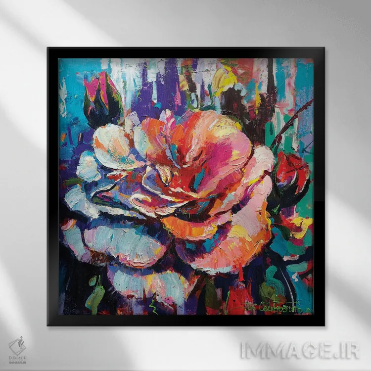براساس پالت ترکیبی اثر، قاب تیک گرم (چوبی) پیشنهاد اول است و مشکی مات (فریم متوسط) مکمل. برای سفارشهای پروژهای با ابعاد و قابهای اختصاصی با ایماژ در تماس باشید.