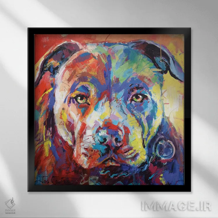 اگر میخواهید دیوار کمی سرزندگیِ محترمانه داشته باشد، «استفوردشایر بول تریر (نژاد سگ)» اثرِ «ژوس کوفرر» مثل یک امضای بامزه اما متین عمل میکند، برای دیوار کنار میز کار گزینهٔ مناسبیست. به دیوار، قصه میدهد—اما قصهای آرام و شیک.