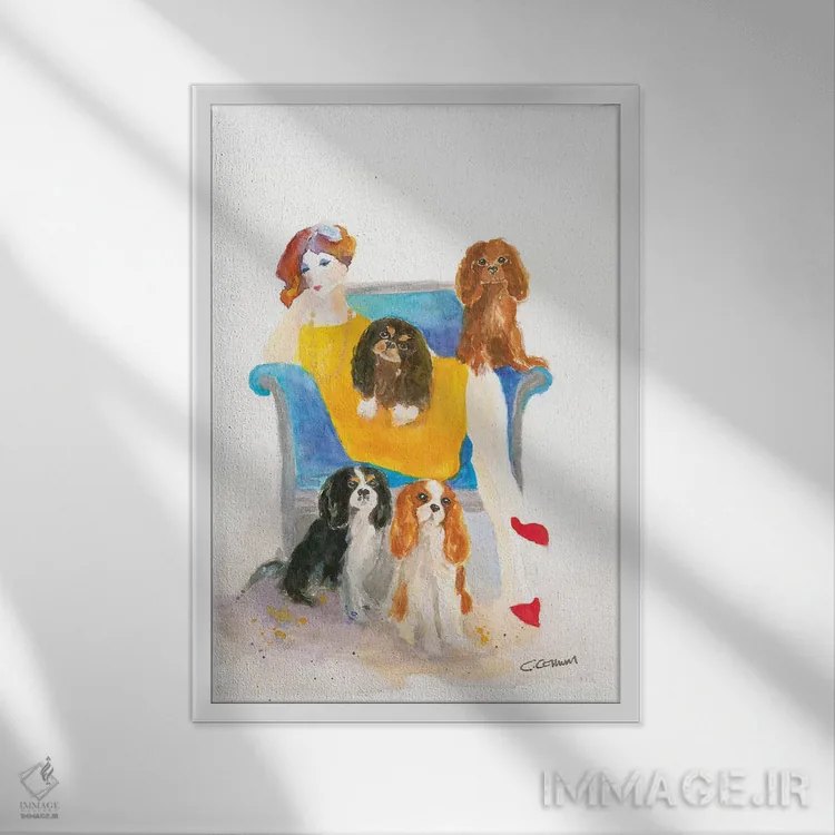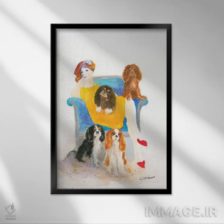 برای اتاقی که به یک عنصر دوستداشتنی نیاز دارد، «بانوی کاوالیِر روی صندلی آبی (نوع سگ)» اثرِ «کانی کالم» در کنار رنگهای خنثی، تضاد دلچسبی میسازد؛ برای دکورهای مدرن و مینیمال انتخابی خوشسلیقه است. در کنار گیاهان و نور طبیعی، جذابتر هم میشود.