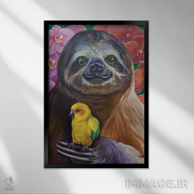 تابلو دکوراتیو سید تنبل اثر سیندی دودس - نمای قاب‌دار مشکی