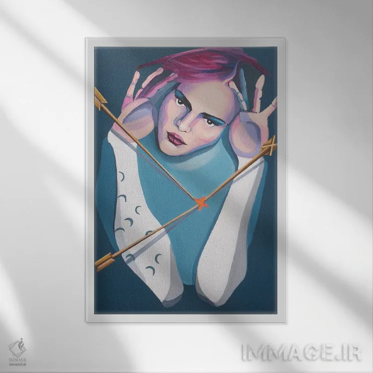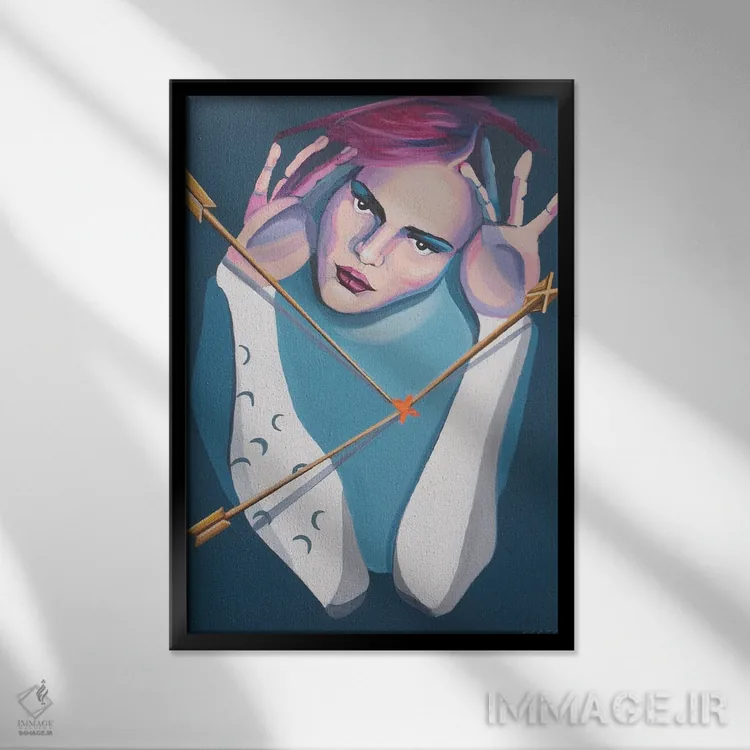 تابلو دکوراتیو زن با تیرها اثر سیسی گیدی - نمای قاب‌دار سفید