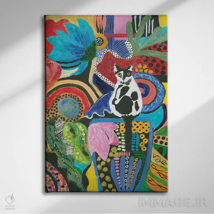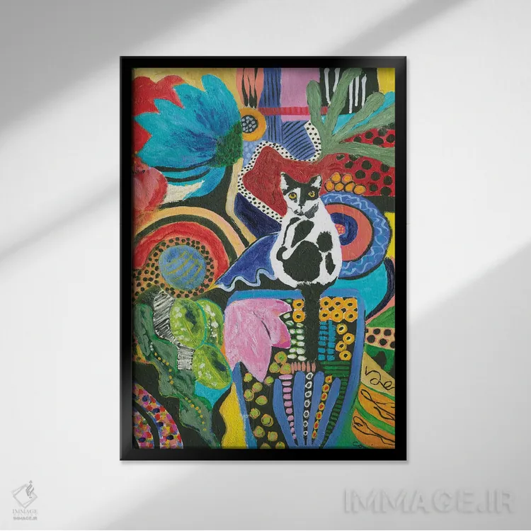 برای دیوارهای ساده، «همنشینی گربهٔ موو (الهام از صدای گاو یا اسم)» اثرِ «کانی کالم» بدون کودکانه شدن، بازیگوش و خوشپرداخت میماند؛ برای اتاق بازی یا گوشهٔ مطالعه انتخابی خوشسلیقه است. هم فضا را گرم میکند، هم شلوغش نمیکند.