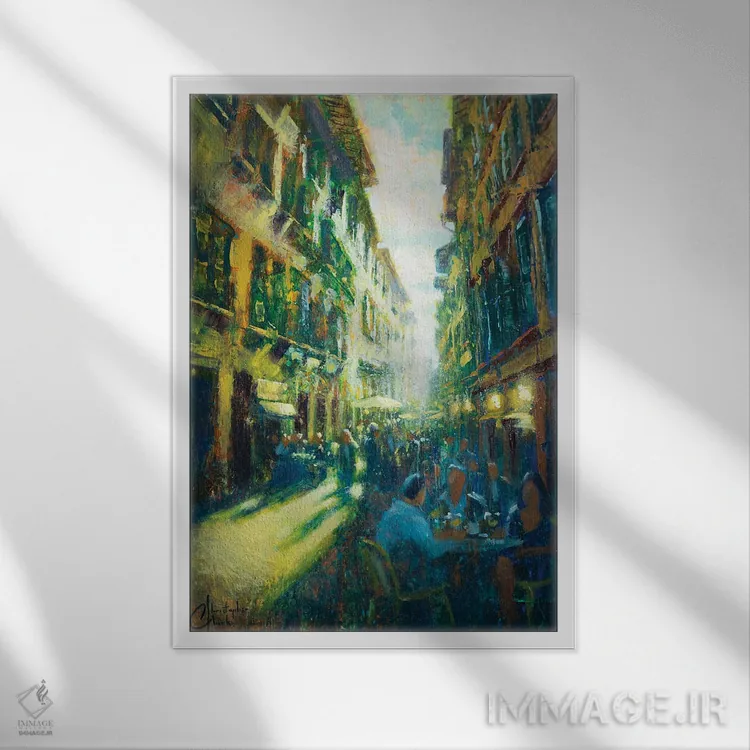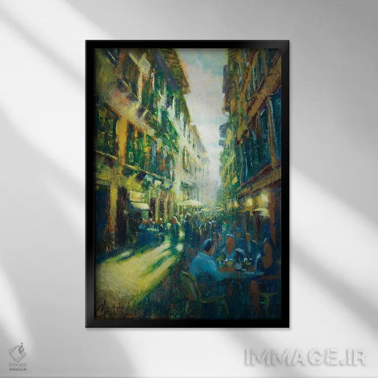 براساس پالت ترکیبی اثر، قاب تیک گرم (چوبی) پیشنهاد اول است و مشکی مات (فریم متوسط) مکمل. برای سفارشهای پروژهای با ابعاد و قابهای اختصاصی با ایماژ در تماس باشید.