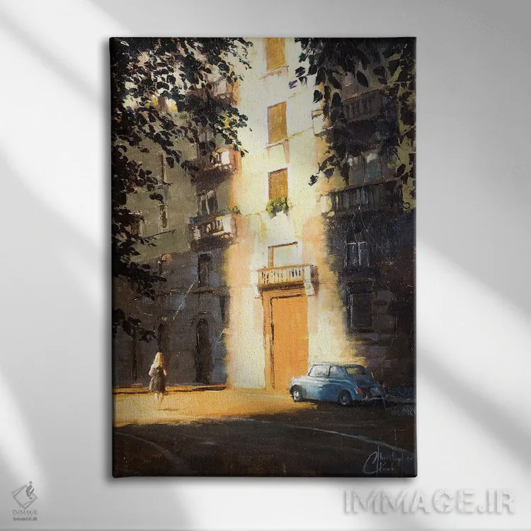 این اثر با عنوان «میلان در سایهها» اثرِ «کریستوفر کلارک»، برای دیوارهای شاخص و چیدمانهای سطحبالا مناسب است.