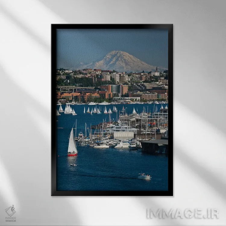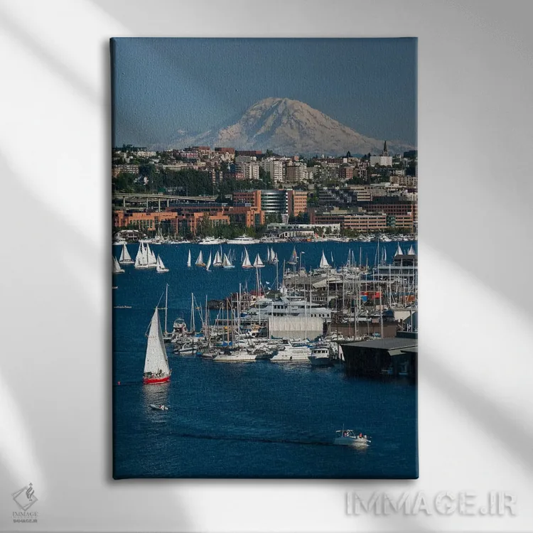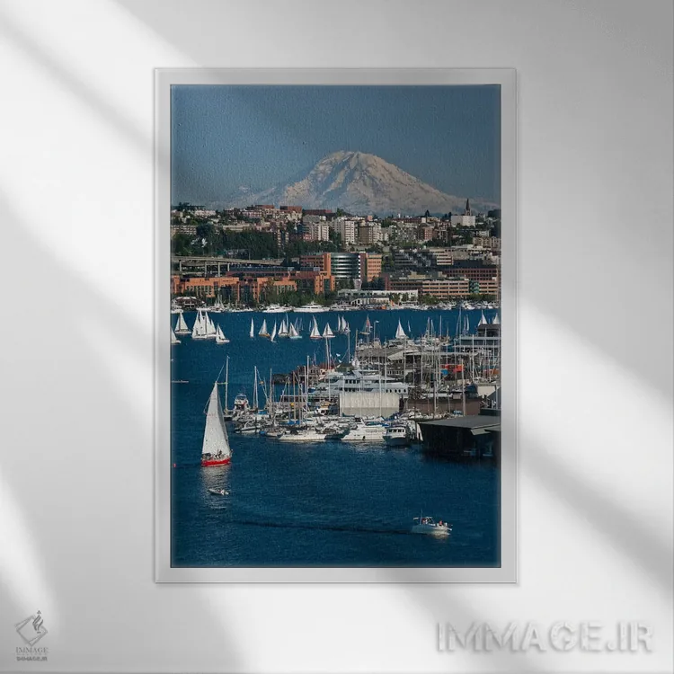 برای دیواری که میخواهید سلیقهتان را آرام و دقیق نشان بدهد، «Seattle، Washington، USA، محلهٔ ساوت لیک یونیون و کوه رینیر از چشمانداز دریاچه یونیون، سیاتل، واشینگتن، آمریکا» اثرِ «چارلز کراست» به فضا، روایت ملایم و قابل لمس میدهد؛ برای دیوارهای گالریوار و ترکیب چند اثر پیشنهاد میشود. هم از دور چشمگیر است و هم از نزدیک پرداخت دارد.