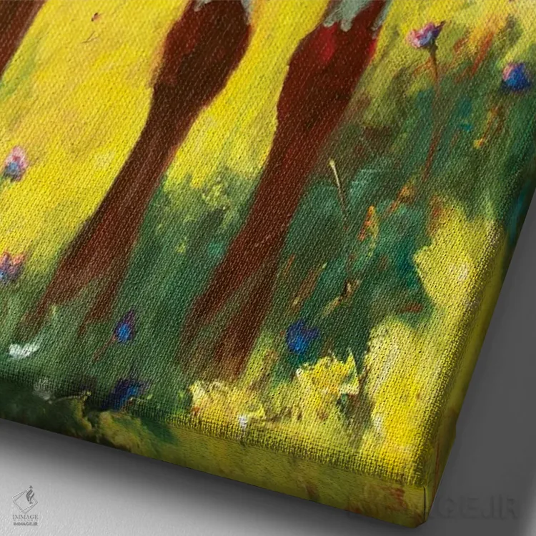 براساس پالت ترکیبی اثر، قاب تیک گرم (چوبی) پیشنهاد اول است و مشکی مات (فریم متوسط) مکمل. برای سفارشهای پروژهای با ابعاد و قابهای اختصاصی با ایماژ در تماس باشید.