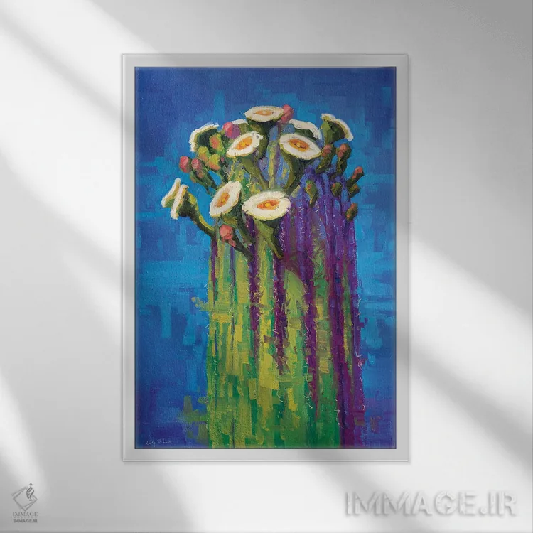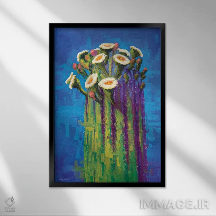 براساس پالت ترکیبی اثر، قاب تیک گرم (چوبی) پیشنهاد اول است و مشکی مات (فریم متوسط) مکمل. برای سفارشهای پروژهای با ابعاد و قابهای اختصاصی با ایماژ در تماس باشید.
