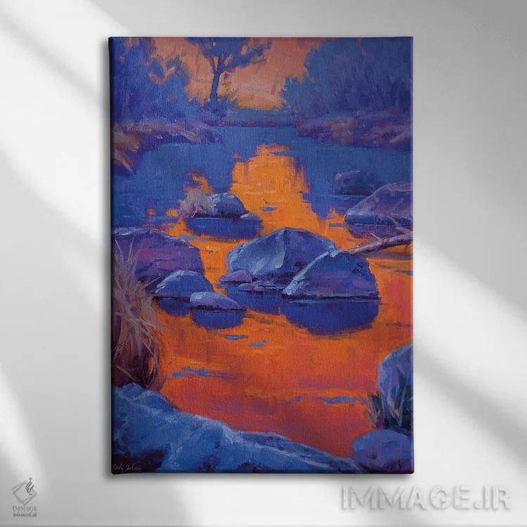 تابلو دکوراتیو مطالعه در نارنجی و آبی اثر کدی دی لانگ - نمای پرسپکتیو محصول