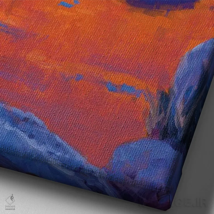 تابلو دکوراتیو مطالعه در نارنجی و آبی اثر کدی دی لانگ - نمای نزدیک بافت بوم