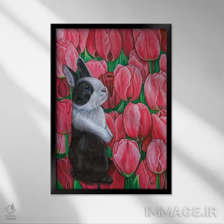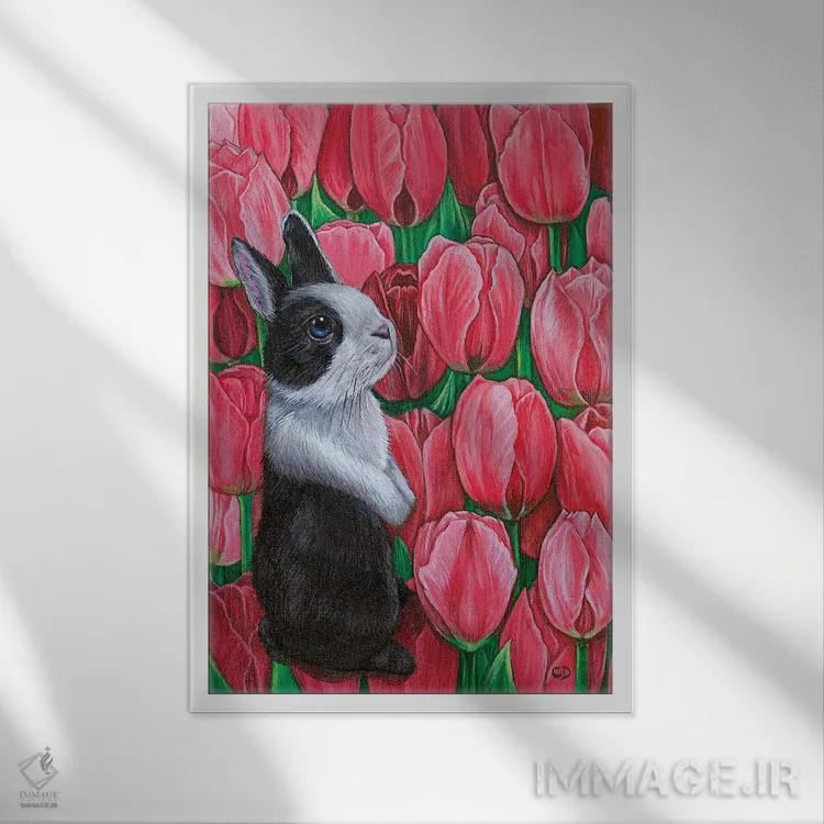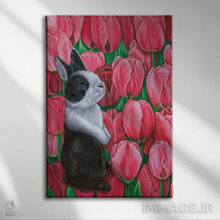 تابلو دکوراتیو خرگوش با لاله ها اثر سیندی دودس