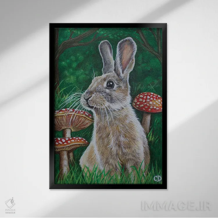 تابلو دکوراتیو خرگوش با قارچ ها اثر سیندی دودس