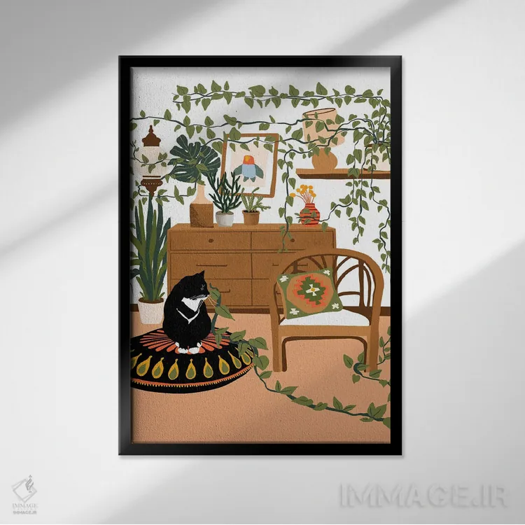 برای دیوارهای ساده، «بگذار رشد کند» اثرِ «جیدا الاسار» گرما و شخصیت به فضا اضافه میکند؛ برای خانههایی با چوب و پارچههای گرم انتخابی خوشسلیقه است. هر بار نگاهش میکنید، یک جزئیات تازه به چشم میآید.