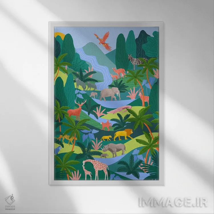براساس پالت ترکیبی اثر، قاب تیک گرم (چوبی) پیشنهاد اول است و مشکی مات (فریم متوسط) مکمل. برای سفارشهای پروژهای با ابعاد و قابهای اختصاصی با ایماژ در تماس باشید.