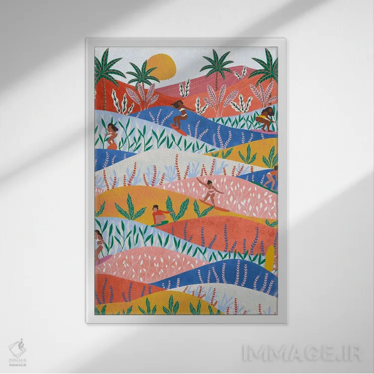 براساس پالت ترکیبی اثر، قاب تیک گرم (چوبی) پیشنهاد اول است و مشکی مات (فریم متوسط) مکمل. برای سفارشهای پروژهای با ابعاد و قابهای اختصاصی با ایماژ در تماس باشید.