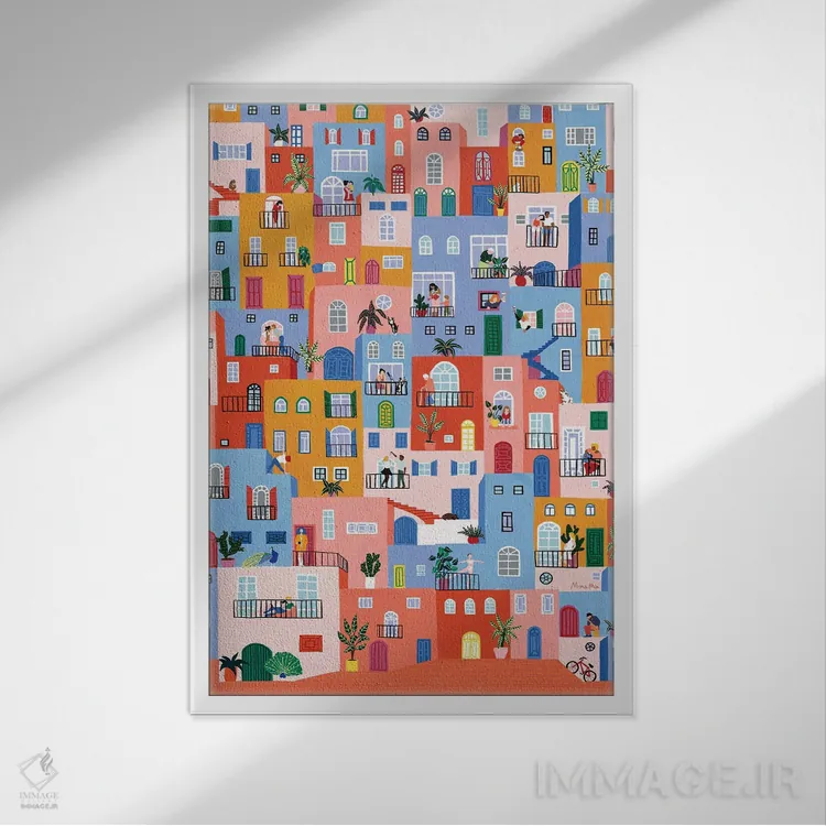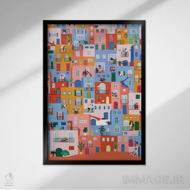 براساس پالت ترکیبی اثر، قاب تیک گرم (چوبی) پیشنهاد اول است و مشکی مات (فریم متوسط) مکمل. برای سفارشهای پروژهای با ابعاد و قابهای اختصاصی با ایماژ در تماس باشید.