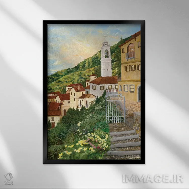 تابلو دکوراتیو ویلای توسکانی اثر کرتیس فانک - نمای قاب‌دار مشکی