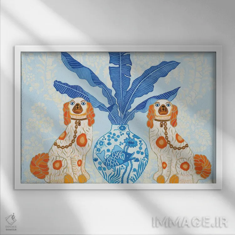 «سگهای استافوردشایر با کوزه زنجبیلی روی کاغذدیواری چینی آبی» اثرِ «گرین ارکید بوتیک (بوتیک هنری)» میتواند به دیوار، انرژیِ نرم و زنده بدهد؛ برای خانههایی با چوب و پارچههای گرم پیشنهاد میشود. اگر دنبال اثر دوستداشتنیِ «بیغلو» هستید، این یکی دقیق مینشیند.