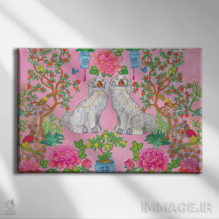 اگر به آثار حیوانات علاقه دارید، «سگهای استافوردشایر چینی در زمینه صورتی» اثرِ «گرین ارکید بوتیک (بوتیک هنری)» به فضا، گرمیِ ملایم اضافه میکند، برای دکورهای مدرن و مینیمال گزینهٔ مناسبیست. به دیوار، قصه میدهد—اما قصهای آرام و شیک.