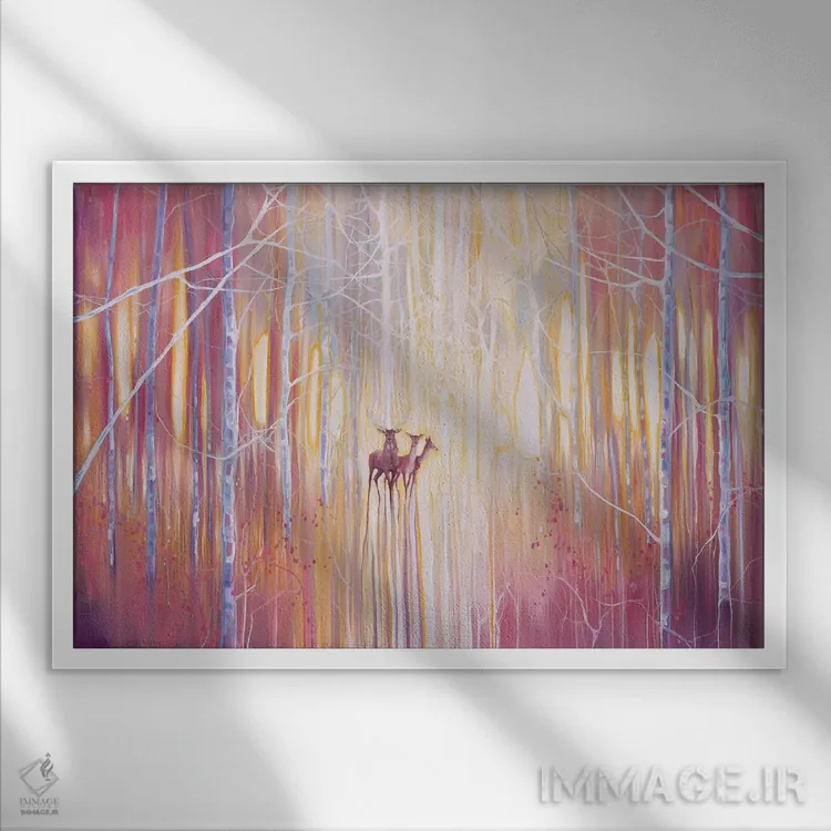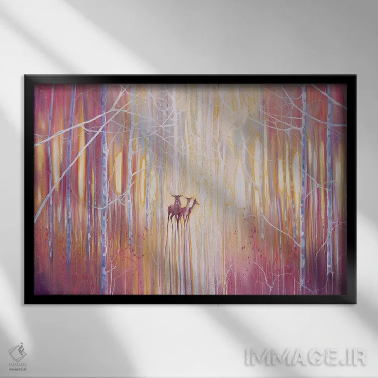 براساس پالت گرم اثر، قاب بلوط روشن (چوبی) پیشنهاد اول است و استخوانی ملایم مکمل. برای سفارشهای پروژهای با ابعاد و قابهای اختصاصی با ایماژ در تماس باشید.