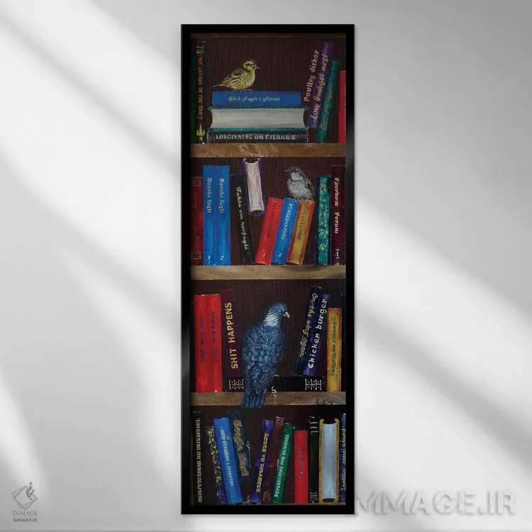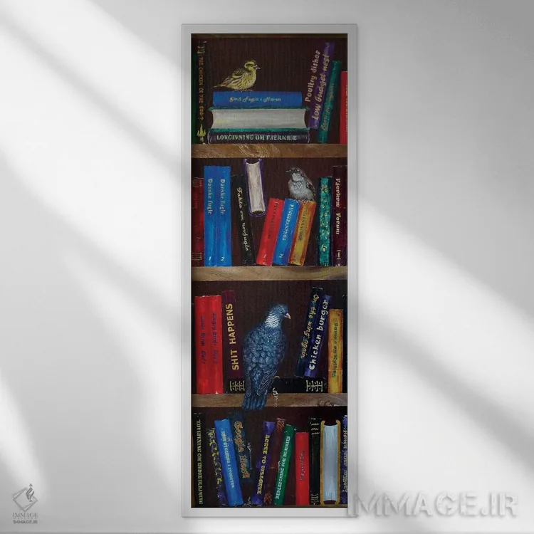 تابلو دکوراتیو قفسه کتاب با یک کبوتر اثر لنا اسمیرنوا
