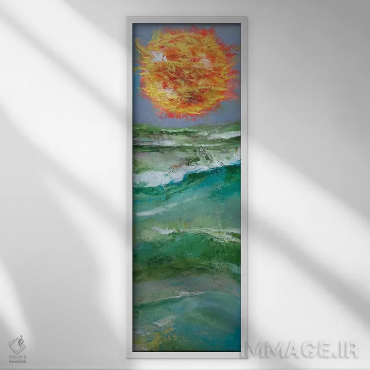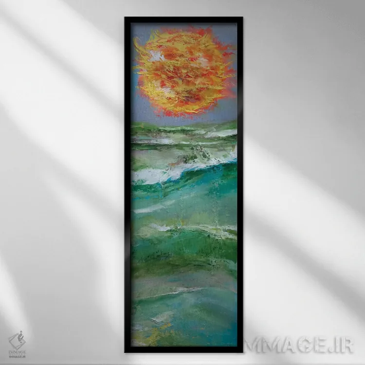 براساس پالت ترکیبی اثر، قاب تیک گرم (چوبی) پیشنهاد اول است و مشکی مات (فریم متوسط) مکمل. برای سفارشهای پروژهای با ابعاد و قابهای اختصاصی با ایماژ در تماس باشید.