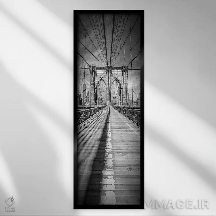 «پل بروکلین شهر نیویورک» اثرِ «ملانی ویولا» میتواند حس معاصر و منظم به دکور بدهد؛ برای نشیمنهای مینیمال پیشنهاد شود. با قاب مشکی مات، جلوهٔ تمیزتری پیدا میکند.