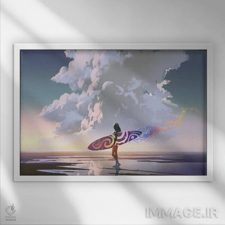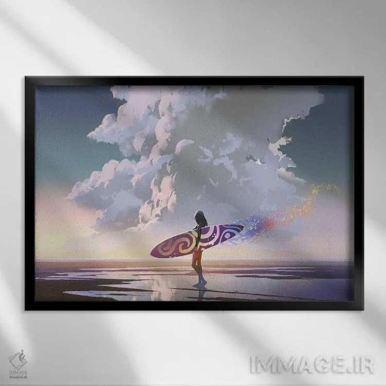 تابلو دکوراتیو دختر موج سوار با تخته جادویی اثر گرندفیلر