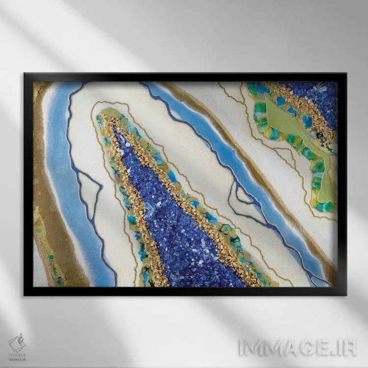 تابلو انتزاعی مسیرهایی به یونان اثر گوگا استودیو - نمای قاب‌دار مشکی