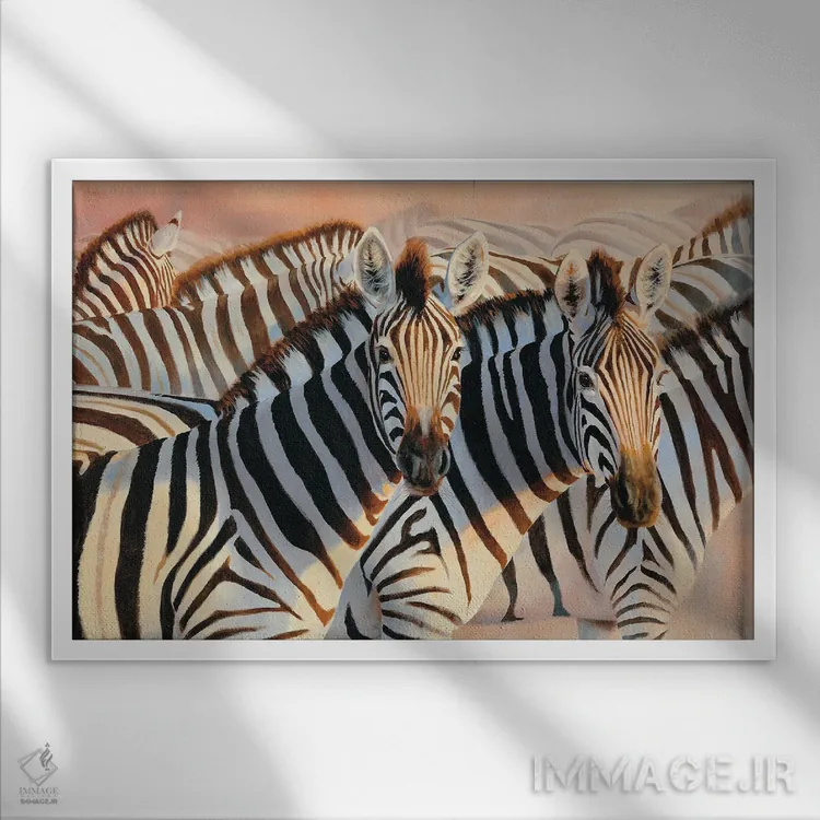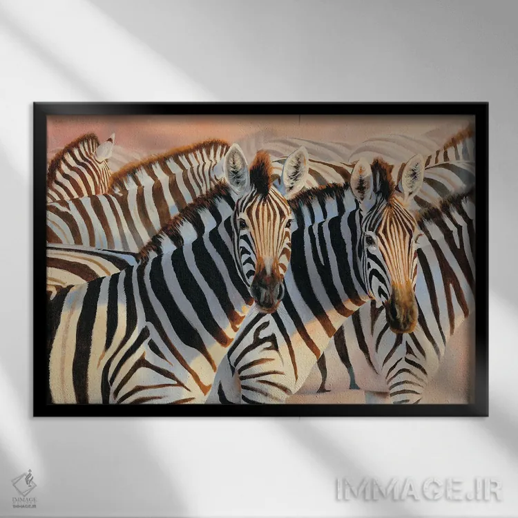 این اثر با عنوان «گورخرهای گرد و غبار درخشان» اثرِ «گرانت هکینگ» در کنار رنگهای خنثی، تضاد دلچسبی میسازد؛ برای کافههای کوچک و صمیمی انتخابی خوشسلیقه است. برای دیوار گالریوار هم گزینهٔ خوبیست.