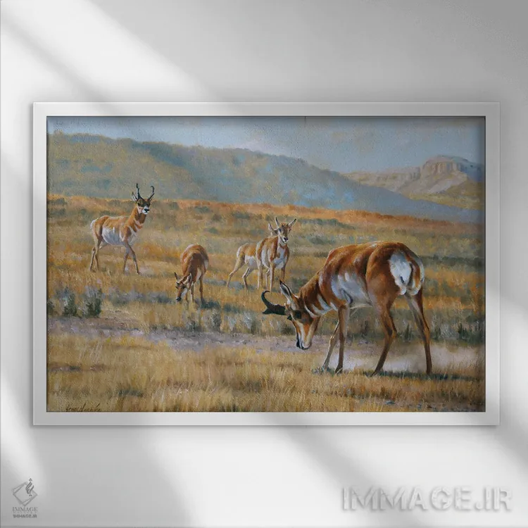 براساس پالت گرم اثر، قاب بلوط روشن (چوبی) پیشنهاد اول است و استخوانی ملایم مکمل. برای سفارشهای پروژهای با ابعاد و قابهای اختصاصی با ایماژ در تماس باشید.