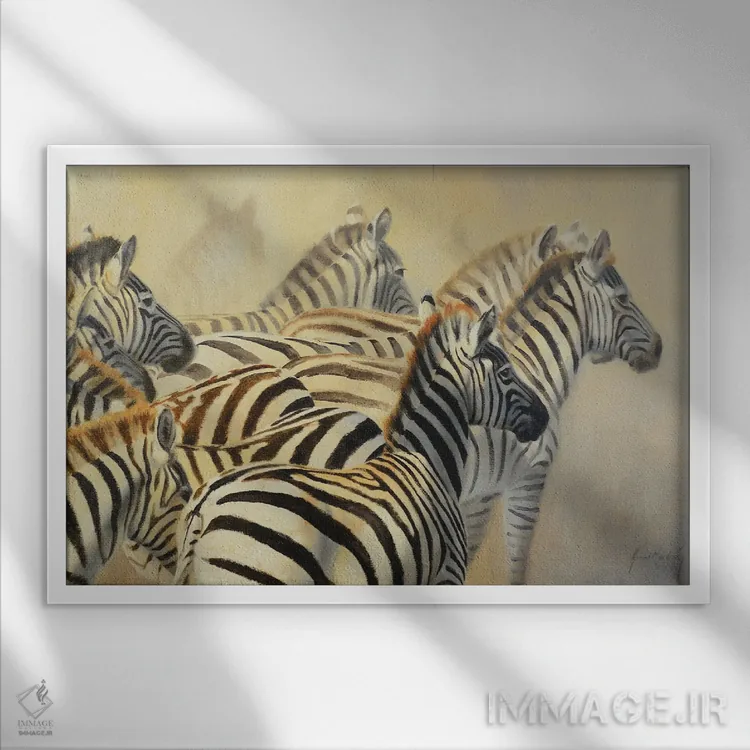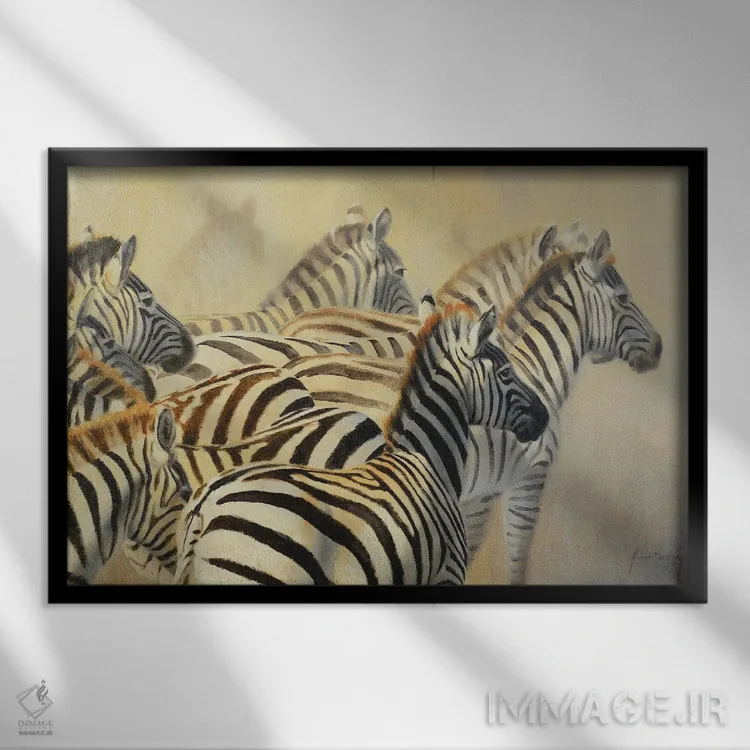 براساس پالت گرم اثر، قاب بلوط روشن (چوبی) پیشنهاد اول است و استخوانی ملایم مکمل. برای سفارشهای پروژهای با ابعاد و قابهای اختصاصی با ایماژ در تماس باشید.