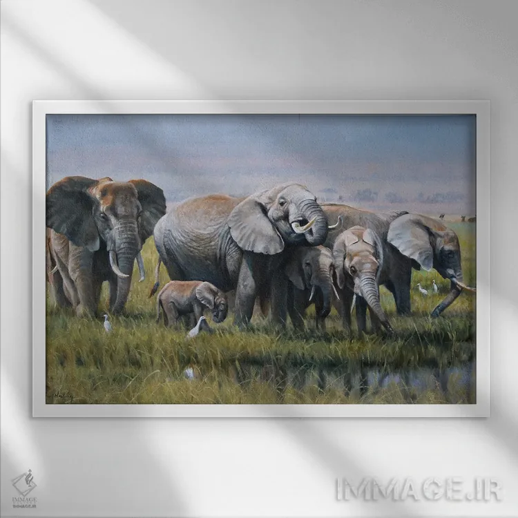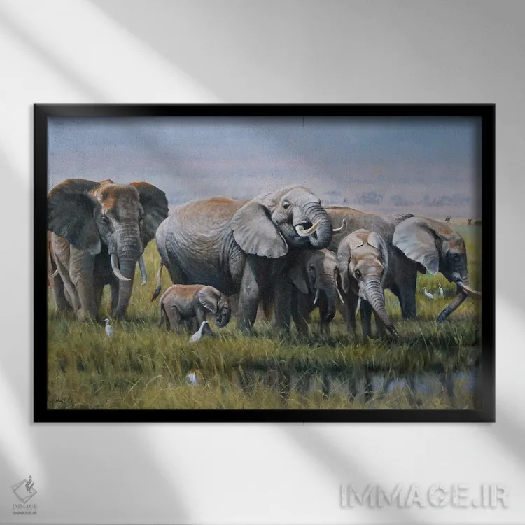 براساس پالت ترکیبی اثر، قاب بلوط روشن (چوبی) پیشنهاد اول است و استخوانی ملایم مکمل. برای سفارشهای پروژهای با ابعاد و قابهای اختصاصی با ایماژ در تماس باشید.