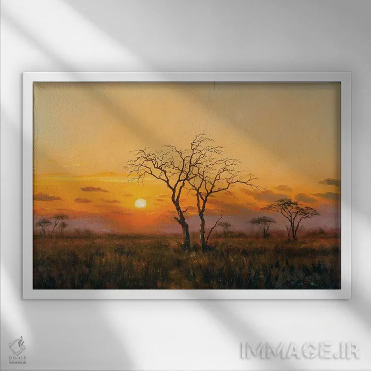 براساس پالت گرم اثر، قاب تیک گرم (چوبی) پیشنهاد اول است و مشکی مات (فریم متوسط) مکمل. برای سفارشهای پروژهای با ابعاد و قابهای اختصاصی با ایماژ در تماس باشید.