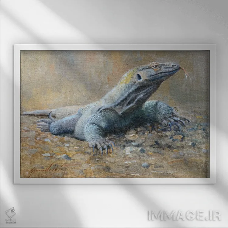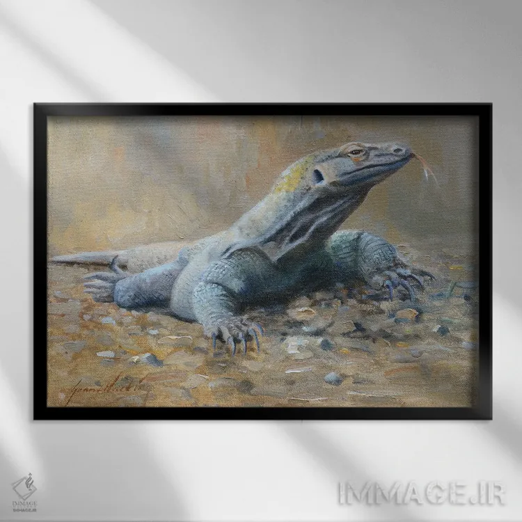 این اثر با عنوان «اژدهای کومودو» اثرِ «گرانت هکینگ» بافت و جزئیات را طوری نشان میدهد که نگاه میماند؛ برای خانههایی با چوب و پارچههای گرم انتخابی خوشسلیقه است. به دیوار، قصه میدهد—اما قصهای آرام و شیک.