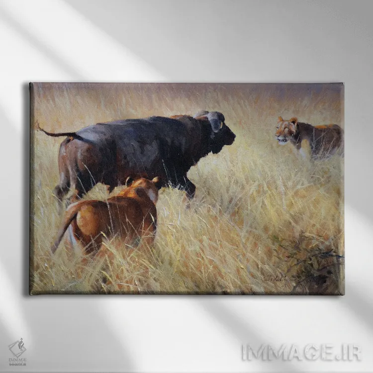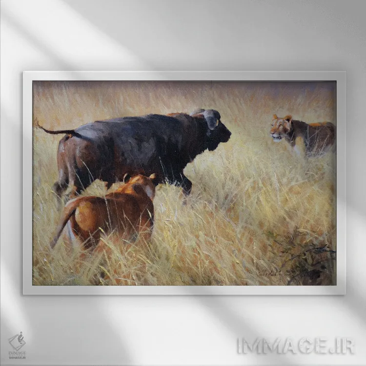 تابلو دکوراتیو شیر و گاومیش دماغه اثر گرانت هکینگ