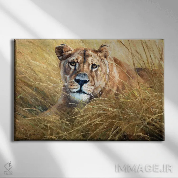 برای اتاقی که به یک عنصر دوستداشتنی نیاز دارد، «در کمین» اثرِ «گرانت هکینگ» بافت و جزئیات را طوری نشان میدهد که نگاه میماند؛ برای اتاق کودک (بدون لحن کودکانه) انتخابی خوشسلیقه است. با نورپردازی نقطهای، جذابتر هم میشود.