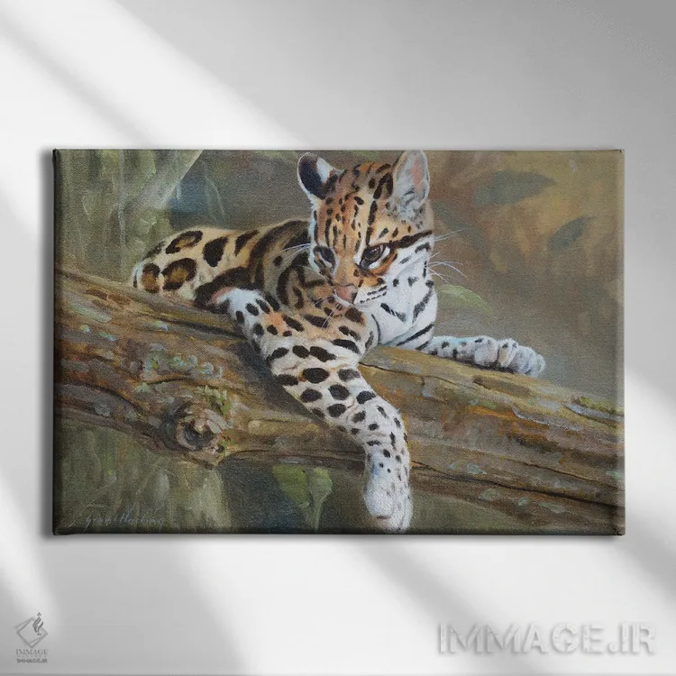 برای دکورهای صمیمی، «اوسلات (گربه خالدار آمریکای جنوبی)» اثرِ «گرانت هکینگ» به دیوار، انرژیِ نرم و زنده میدهد؛ برای اتاق بازی یا گوشهٔ مطالعه انتخابی خوشسلیقه است. با قاب چوبی یا مشکی، حس مرتبتری پیدا میکند.