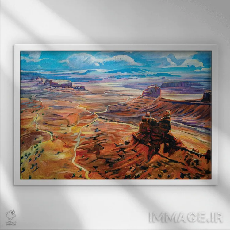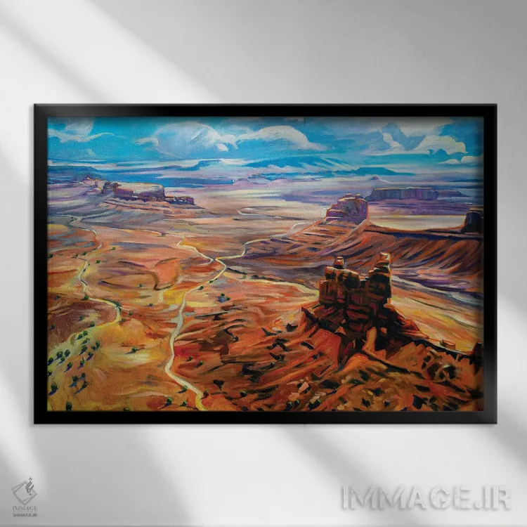 براساس پالت ترکیبی اثر، قاب تیک گرم (چوبی) پیشنهاد اول است و مشکی مات (فریم متوسط) مکمل. برای سفارشهای پروژهای با ابعاد و قابهای اختصاصی با ایماژ در تماس باشید.
