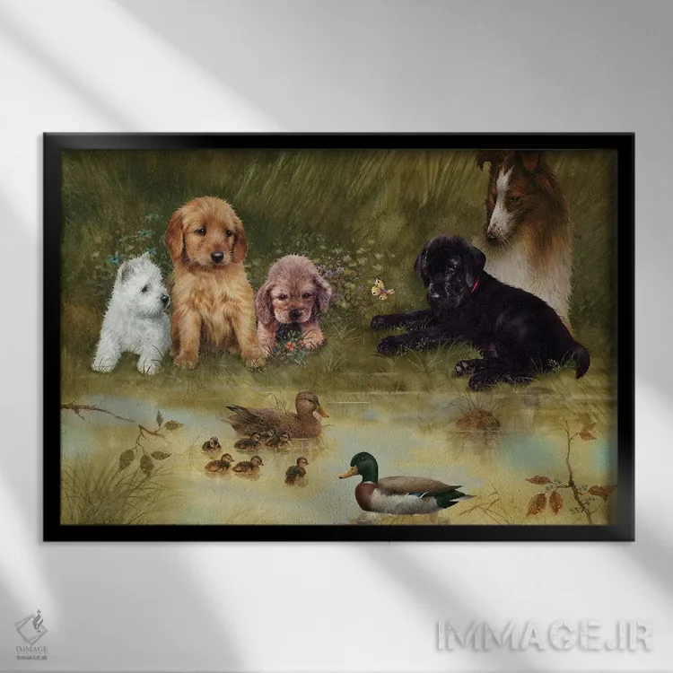 برای دکورهای صمیمی، «بازدید از برکه» اثرِ «جوردانو استودیو (استودیوی هنری)» یک لبخند ریز به چیدمان میدهد؛ برای دیوار کنار میز کار انتخابی خوشسلیقه است. هر بار نگاهش میکنید، یک جزئیات تازه به چشم میآید.