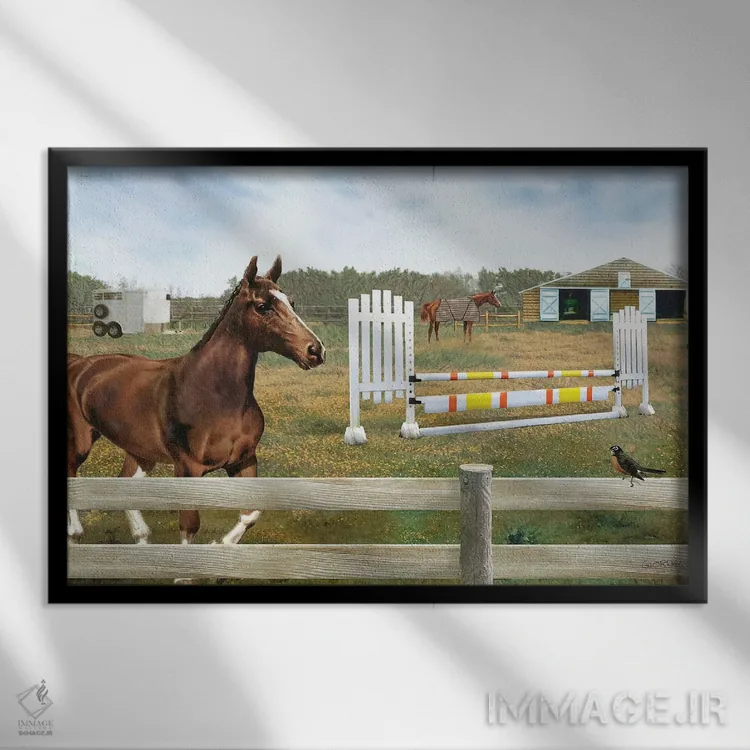 براساس پالت ترکیبی اثر، قاب بلوط روشن (چوبی) پیشنهاد اول است و استخوانی ملایم مکمل. برای سفارشهای پروژهای با ابعاد و قابهای اختصاصی با ایماژ در تماس باشید.