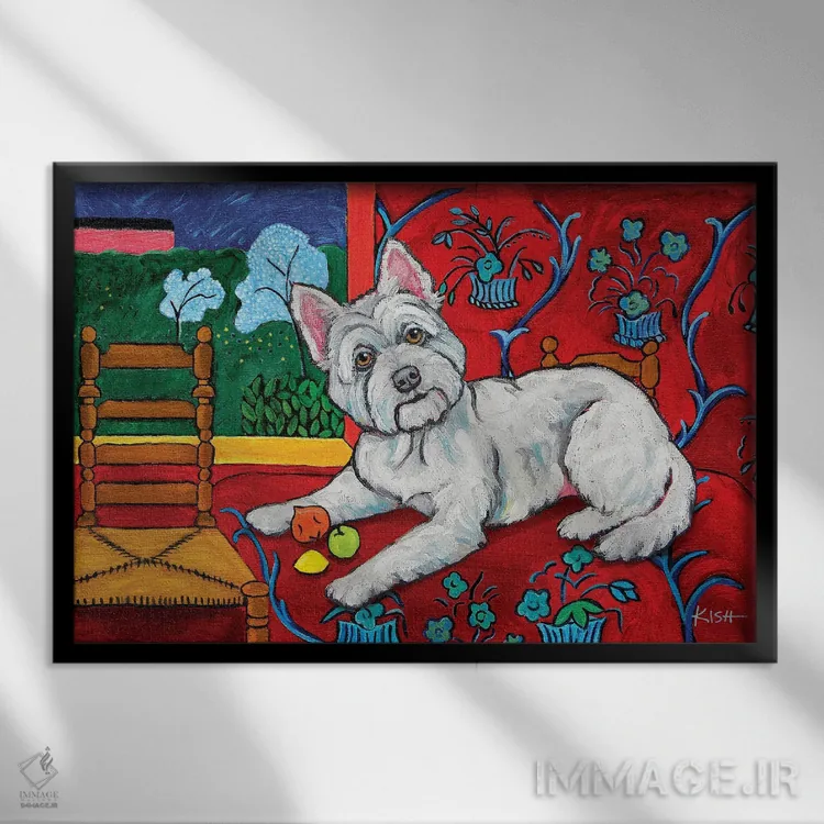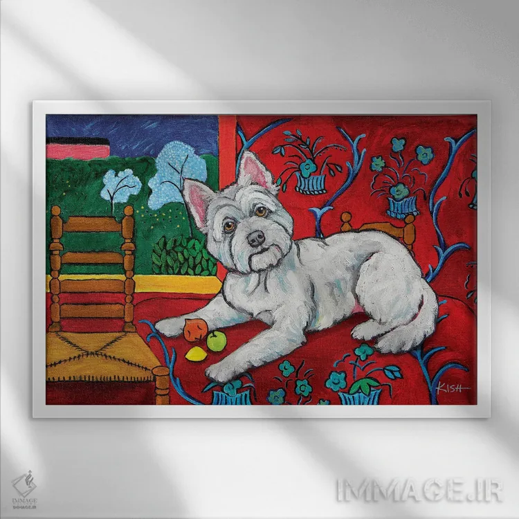این اثر با عنوان «وِستی موتیسه (سگ وستهیلَند + سبک موatisse)» اثرِ «گرچن کیش سرانو» یک لبخند ریز به چیدمان میدهد؛ برای هدیهدادن به دوستداران حیوانات انتخابی خوشسلیقه است. با قاب چوبی یا مشکی، حس مرتبتری پیدا میکند.