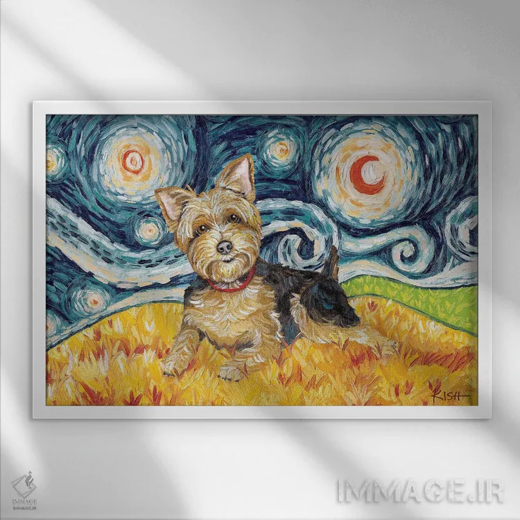 «یورکی در شب پرستاره (سگ یورکشایر)» اثرِ «گرچن کیش سرانو» از آن کارهاییست که در کنار رنگهای خنثی، تضاد دلچسبی میسازد؛ برای فضاهای روستیک یا بوهو انتخاب خوبیست. هر بار نگاهش میکنید، یک جزئیات تازه به چشم میآید.