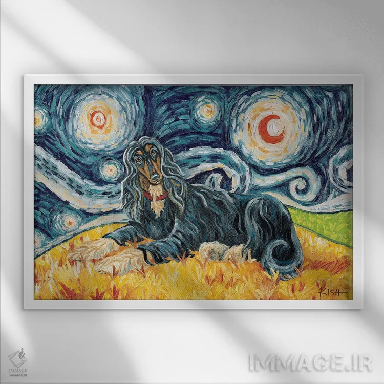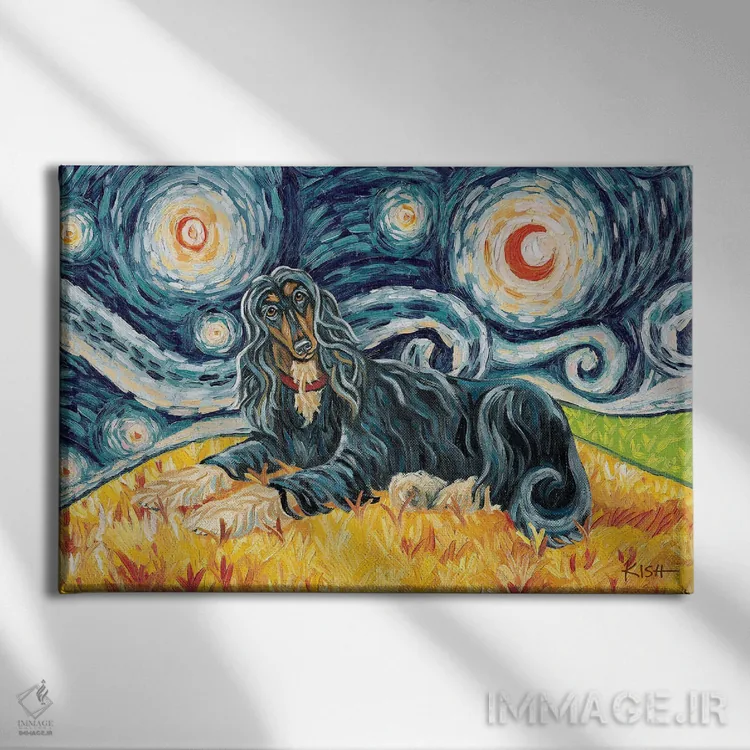 تابلو دکوراتیو سگ افغان در یک شب پرستاره اثر گرچن کیش سرانو
