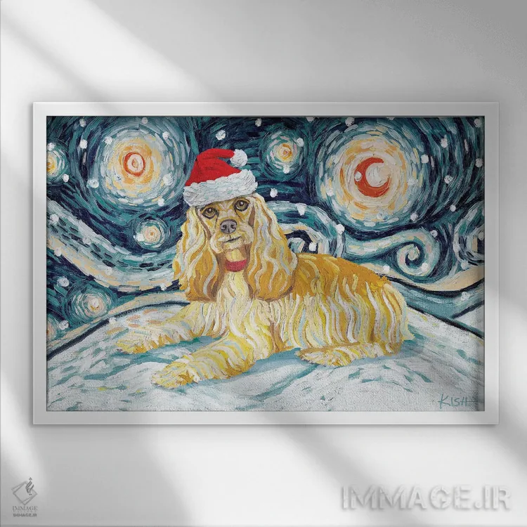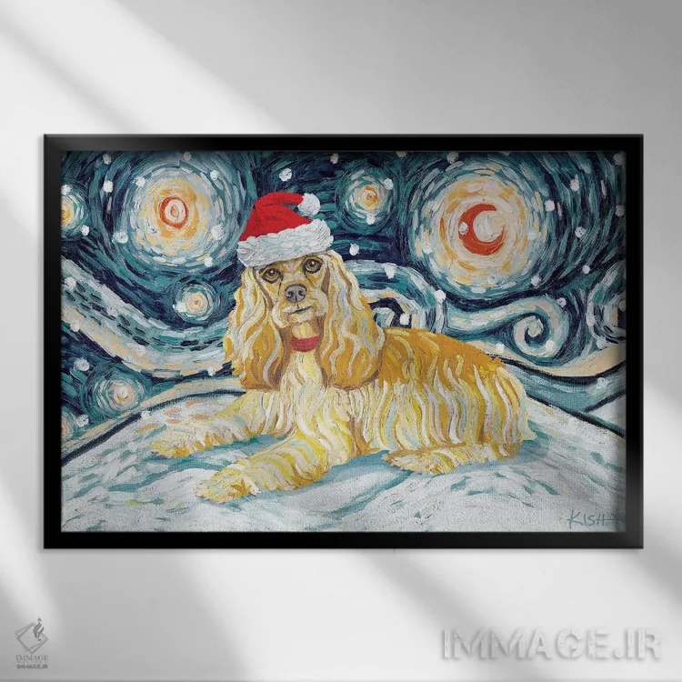 تابلو دکوراتیو کوکر اسپانیل در یک شب برفی اثر گرچن کیش سرانو