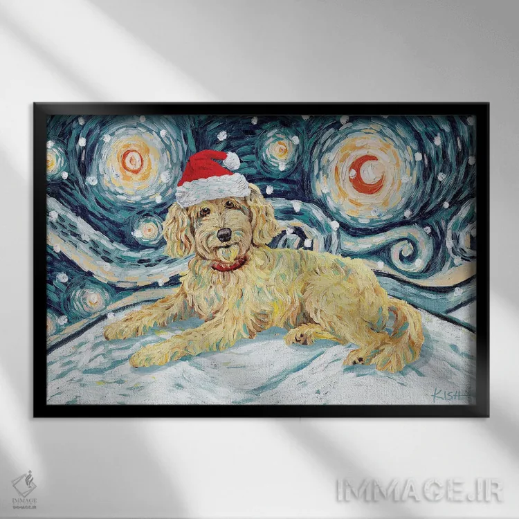 تابلو دکوراتیو دودل طلایی در یک شب برفی اثر گرچن کیش سرانو