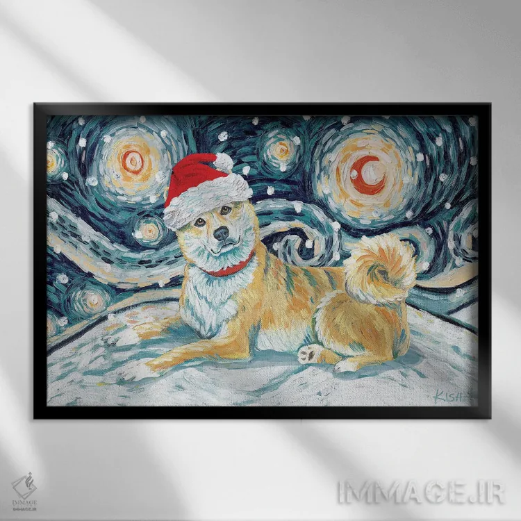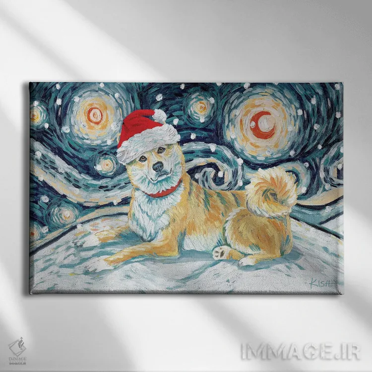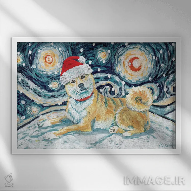 تابلو دکوراتیو شیبا اینو کرم رنگ در یک شب برفی اثر گرچن کیش سرانو