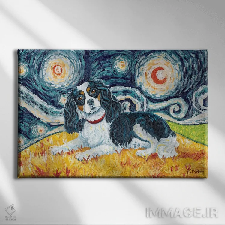 تابلو دکوراتیو کاوالیر کینگ چارلز در یک شب پرستاره اثر گرچن کیش سرانو