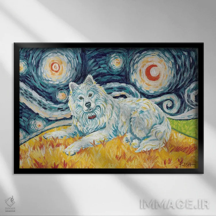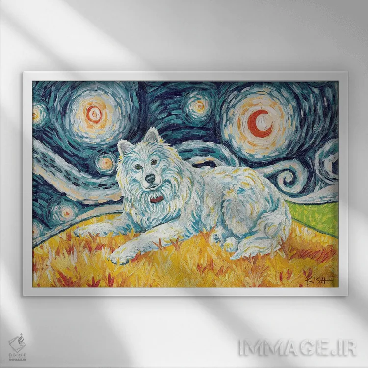 «ساموید در یک شب پرستاره» اثرِ «گرچن کیش سرانو» از آن کارهاییست که بافت و جزئیات را طوری نشان میدهد که نگاه میماند؛ برای فضاهای روستیک یا بوهو انتخاب خوبیست. با قاب چوبی یا مشکی، حس مرتبتری پیدا میکند.